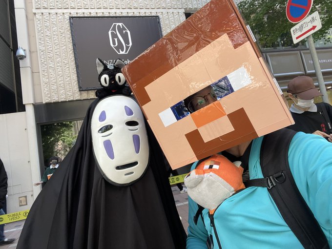 KEG( @keg_r125 )さんのカオナシと (目隠しつけ忘れた( ꒪⌓꒪) #サツコス