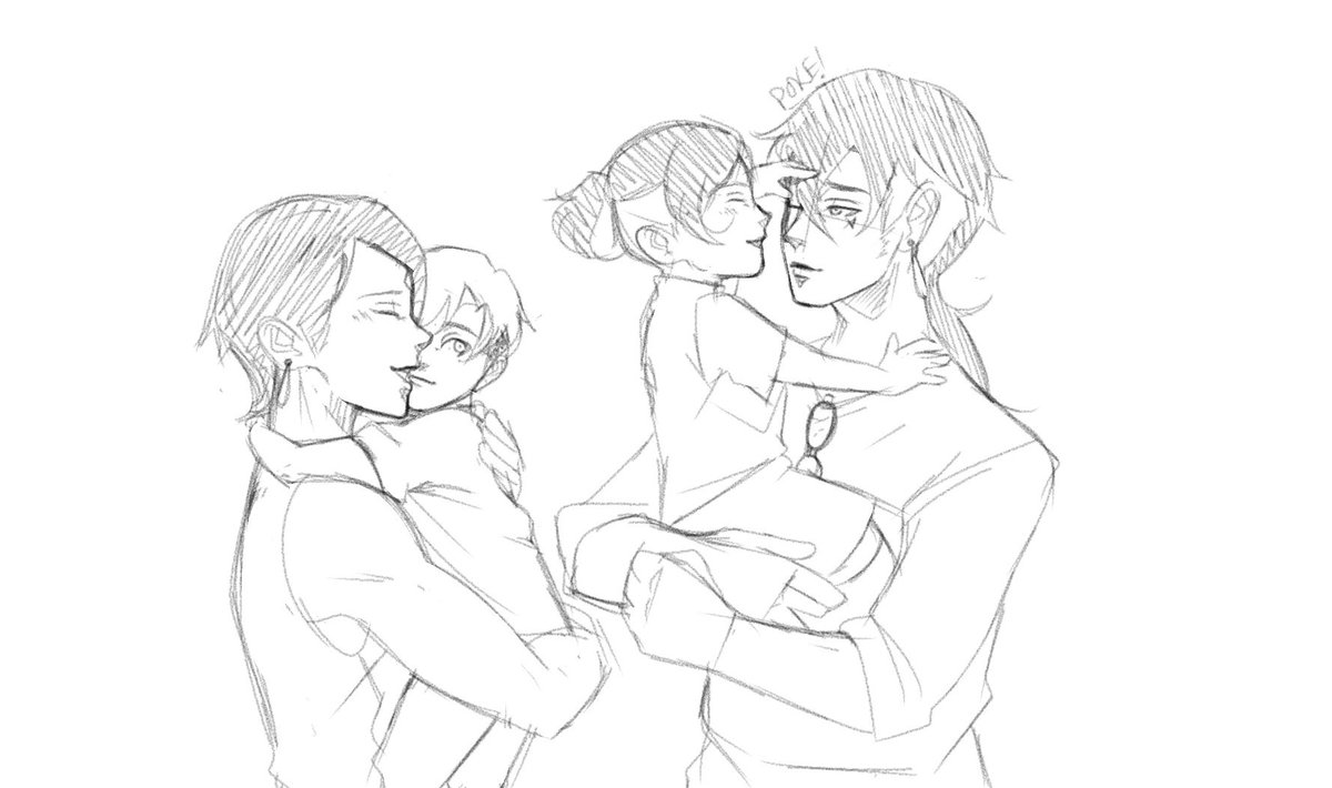 I dont have much to offer #kawasaraweek2021 but heres a lil hc family of theirs. They found the middle kid in the woods or something and adopted them