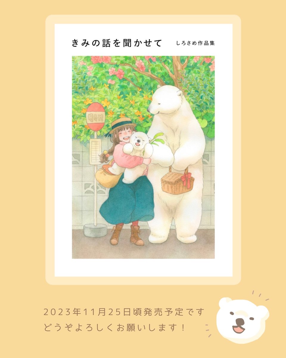□お知らせ□ 小学館集英社プロダクションさんより、作品集『きみの話を聞かせて』が11月25日頃発売されることになりました🐻❄️ Amazonでも予約開始しています🐻 amazon.co.jp/dp/4796873708 これまでSNSに上げてきた漫画作品たち、イラストや言葉などをぎゅっとまとめた初めての本格作品集となります🐻❄️
