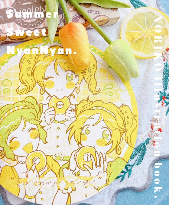 23 61 まきあしゃん(@ makia274 )主催の法子イラスト本に参加させていただきました♡ 夏っぽい色合いでオリジナル衣装&ヘアスタイルのサマースイート娘々を描いたよー🍋💚 22/07/10 20:21