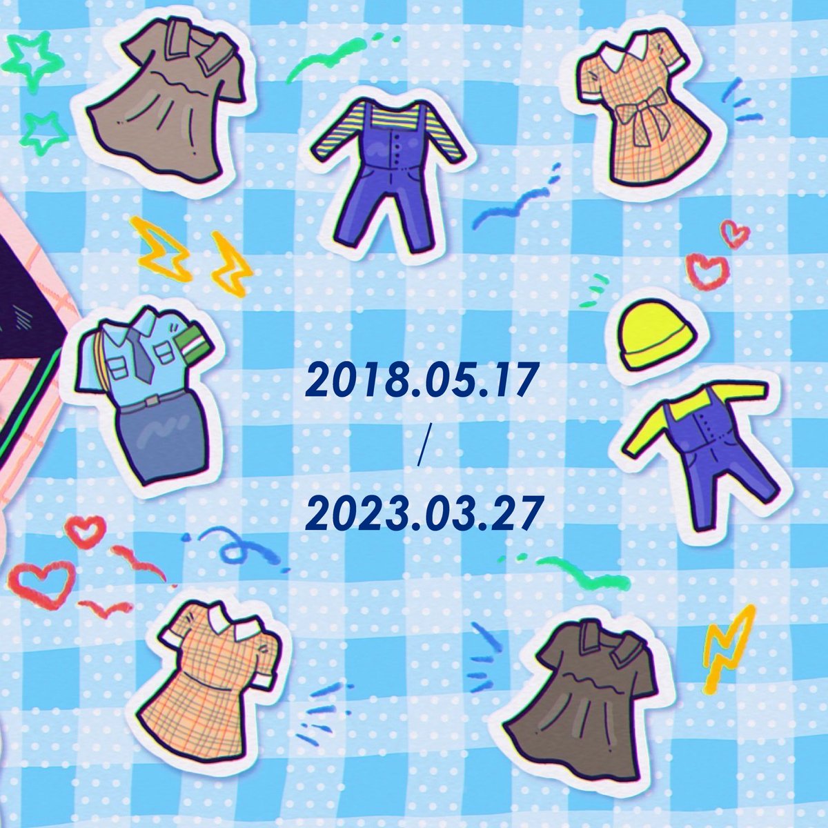 4 8 裏表紙は今までのイベントの衣装!のシール風! メモリアルブックということで、シール帳のような楽しい思い出ブックをコンセプトに描かせていただきました。 企画ありがとうございました! 2人にも届いてよかった🫶 23/03/27 22:36