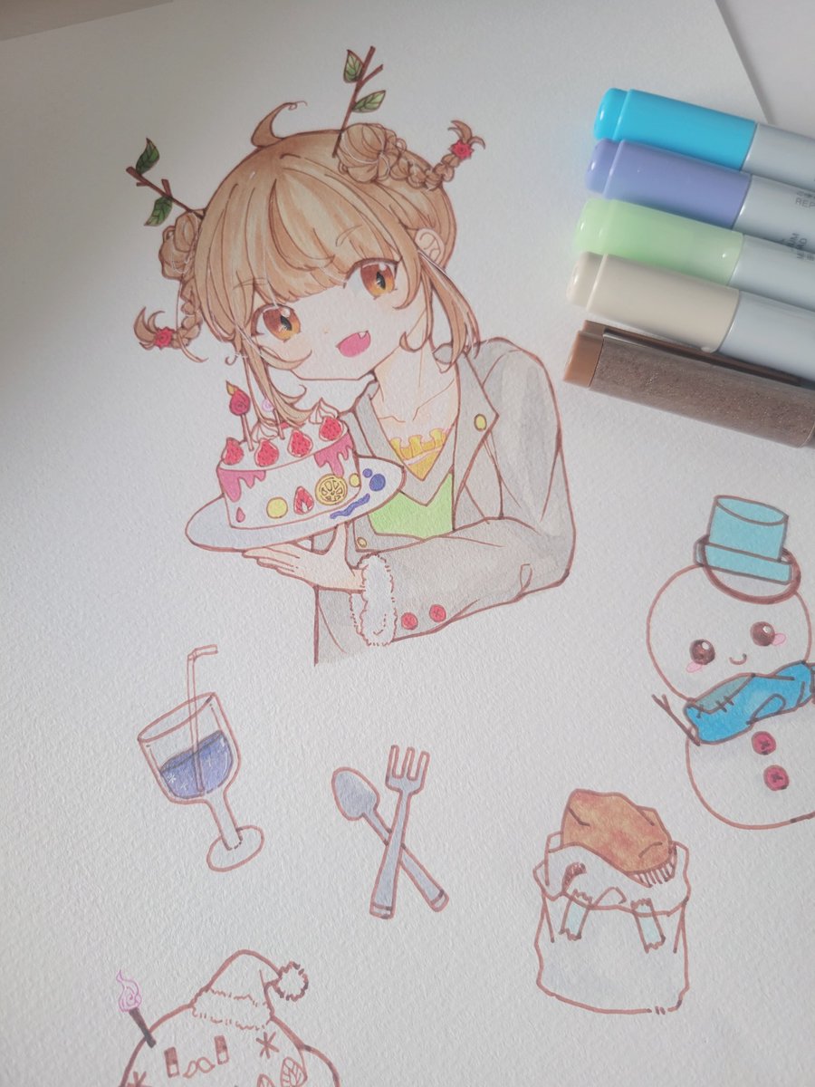 リアルで依頼されてたイラスト完成しました〜‼️ ちょっと落ち着き目の色合いにしてみました|•'-'•)و✧ #イラスト #イラスト好きな人とつながりたい #イラスト依頼 #絵描きさんとつながりたい #絵描きさんと仲良くなりたい #アナログ絵描きさんと繋がりたい #オリキャライラスト