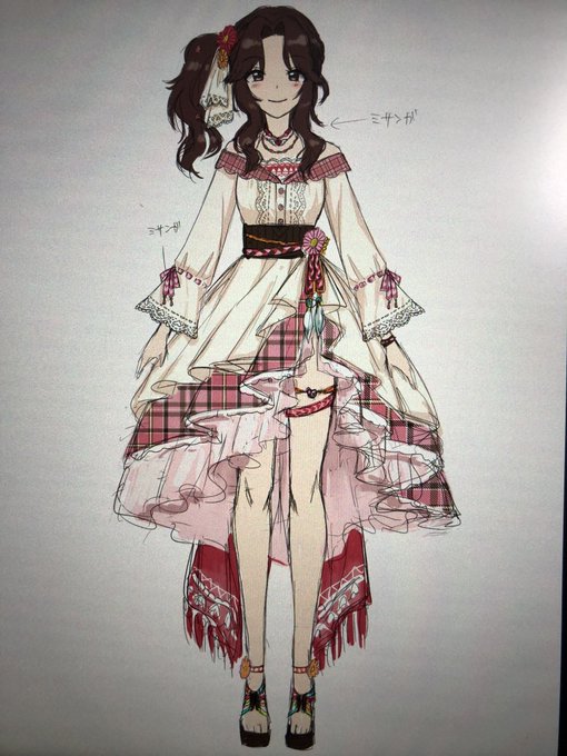 #リプ来たキャラのバレンタイン衣装を考えて描く ガッショーブさんからのリクエストで有浦柑奈ちゃんです🤗遅くなってしまってすみません💦🙏 色々考えてましたが、有浦さんの健康的なおみ足と肩を見せるデザインにしました!めっちゃ楽しく描かせて頂きました!リプ頂きありがとうございました!
