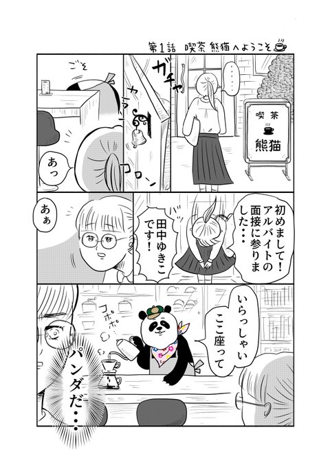 【創作漫画】 喫茶クマネコ〈第1話〉 白黒はっきりしないことが大嫌いなパンダが営む純喫茶「喫茶 熊猫」🐼☕️ パンダ店長とバイトの女子学生がおりなす不思議な物語・・・たぶん。 #コルクラボマンガ専科 @sadycork