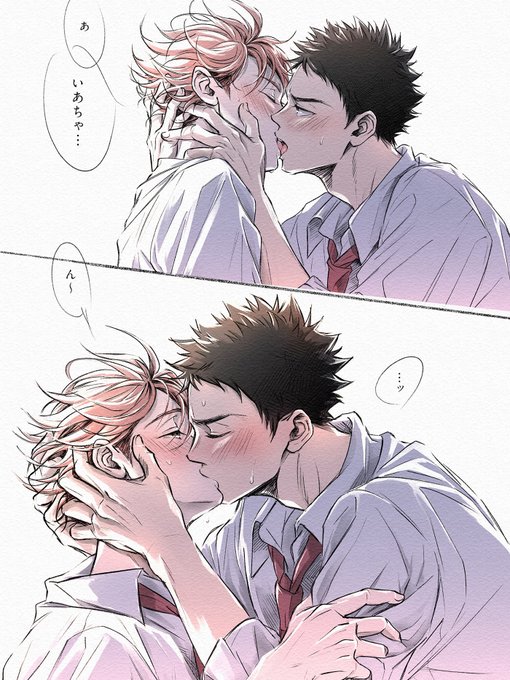 髪をくしゃってして😘するの好きです。 いわちゃんはおいかわくんのふわ髪を優しくくしゃってするのも好きだしワンコみたくわしゃわしゃするのも好きだと思います。