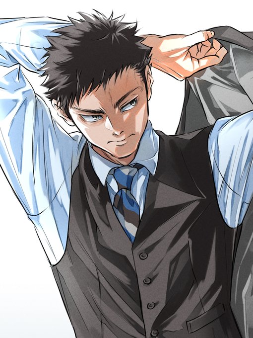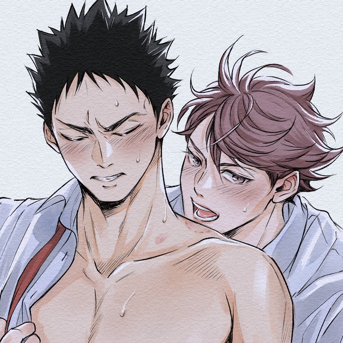 侑北といえばやはり北さんの女優(主将)感たっぷりの肩ジャージと侑くんのやんちゃな番犬感漂うこの定番ポーズを描きたくて!