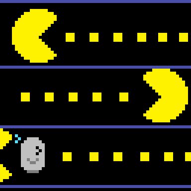 1 2 パックマンに追いかけられるオリキャラ 👾 #パックマン #ドット絵 #Pixelart 20/08/23 18:29