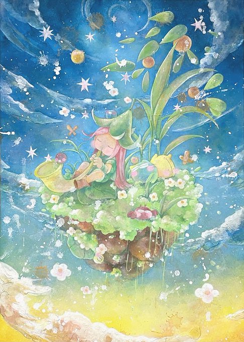 #ゴールデンウィークSNS展覧会2023 アナログ画材で優しい世界描いてます🌱 お絵描き配信も始めました〜