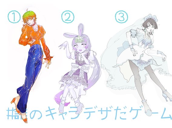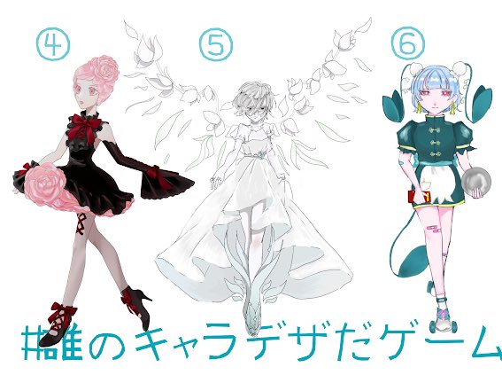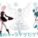 #誰のキャラデザだゲーム に参加させていただきました!私が描いたのは6番の子です!デザインかわい~☺︎ この三枚の中に私がキャラデザさせていただいた子もいるので是非!見つけてリプツリーから投票してな! 一応自分が描いた子も四枚目に置いていきます! 主催:つき人様@ tukky1600