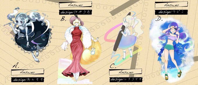 5 7 crownさん主催のキャラデザ企画答え合わせー! 私は、Cの子を描かせていただきました! ちなみにお題のリボンは私が案を出させていただきましたー(●'w'●) 楽しかったからまたやりたい!!! 20/11/06 21:43