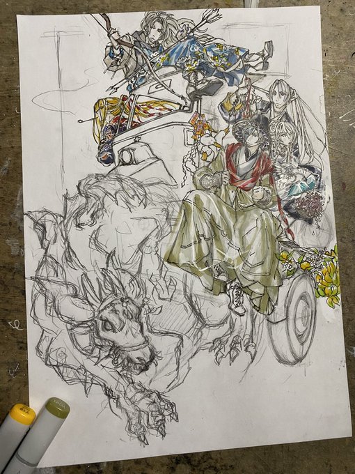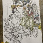 1 6 途中経過 #らく描き #イラスト #オリキャラ #drawing #illustration #design #sketch #絵描き #コピック #アナログイラスト #Illustrator #荷車 #貨物 23/05/14 18:45