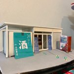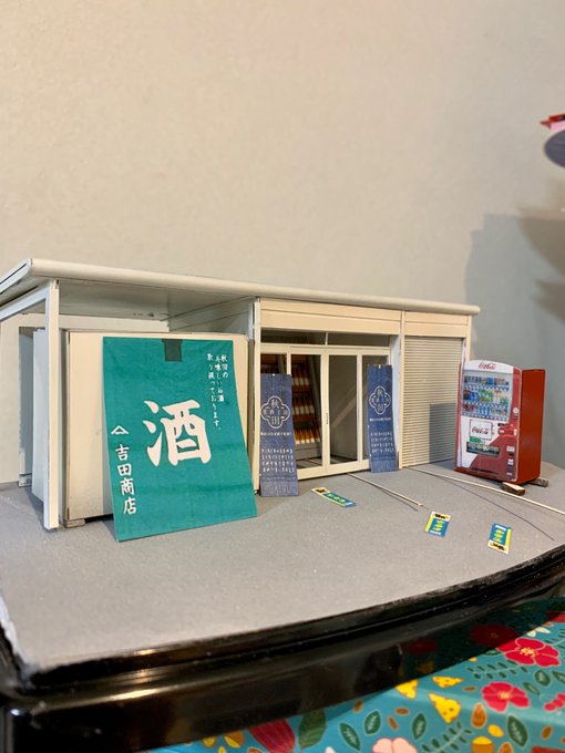 近所の #吉田商店 およそ完成😊 あとは固定したらプレゼントしよ✨ #ペーパークラフト #紙工作 #鉄道模型 #建築模型 #ジオラマ #樹脂粘土 #ウェザリング #日本酒 #居酒屋
