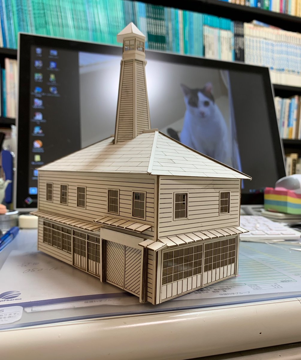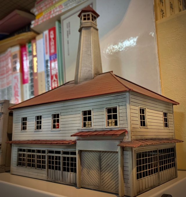 仕事の合間に消防署を作る莫迦者🤣 #ペーパークラフト #盛岡市 #紺屋町 #ジオラマ #鉄道模型