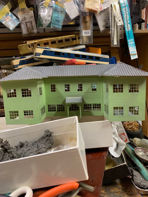 今日の進捗状況😊 #建物模型 #ペーパークラフト #ジオラマ #レイアウト #鉄道模型