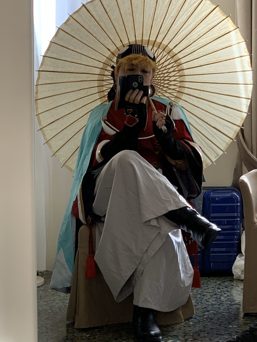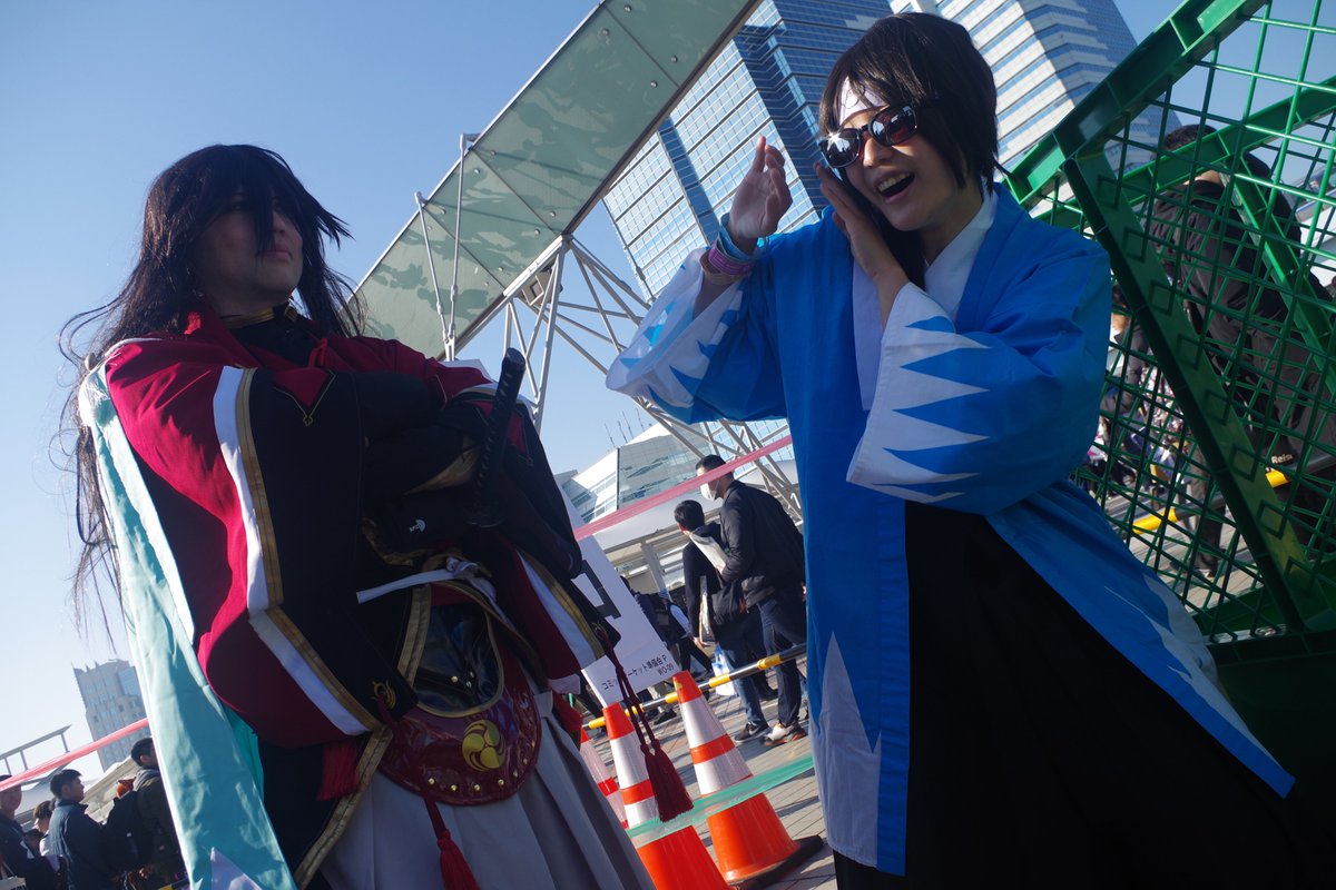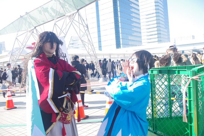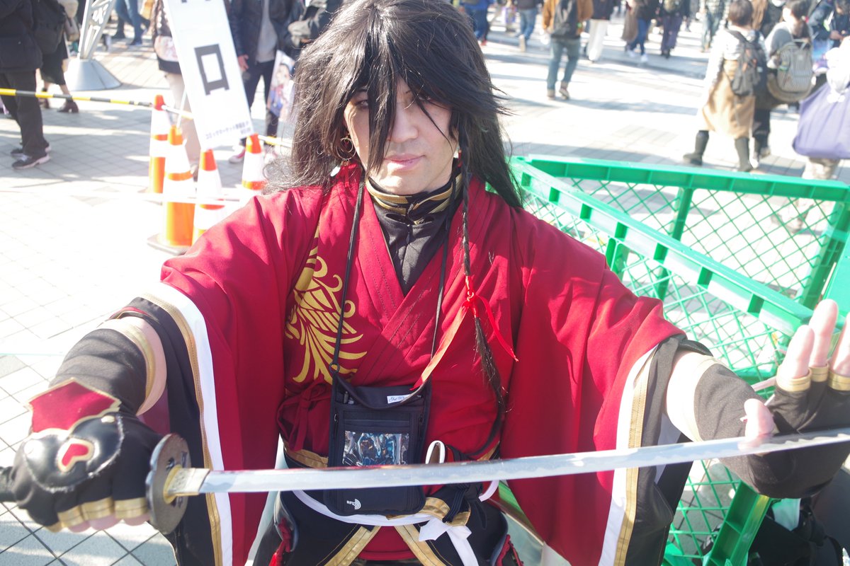 C97 冬コミ 4日目 エントランスとG1駐車場 和泉守兼定:ワシ 撮影:まきすけさん 駐車場に移動した時に夕方でしたので ちょうどいい感じに後光が差してましたw #C97 #C97コスプレ4日目 #C97コスプレ