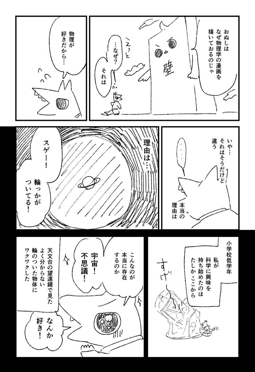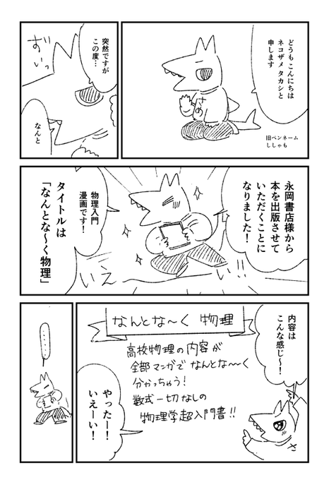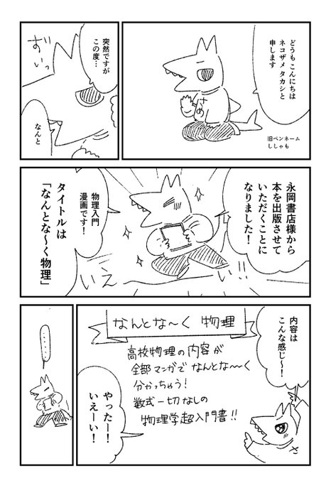 「私が物理学の漫画を描いた理由」(1/5) 「なんとな~く物理」発売日から今日で1年! 記念に、執筆のきっかけ漫画を再掲です(∩∩) ※ラスト3ページは新規で描いたよ #これでフォロワーさんが増えました