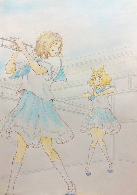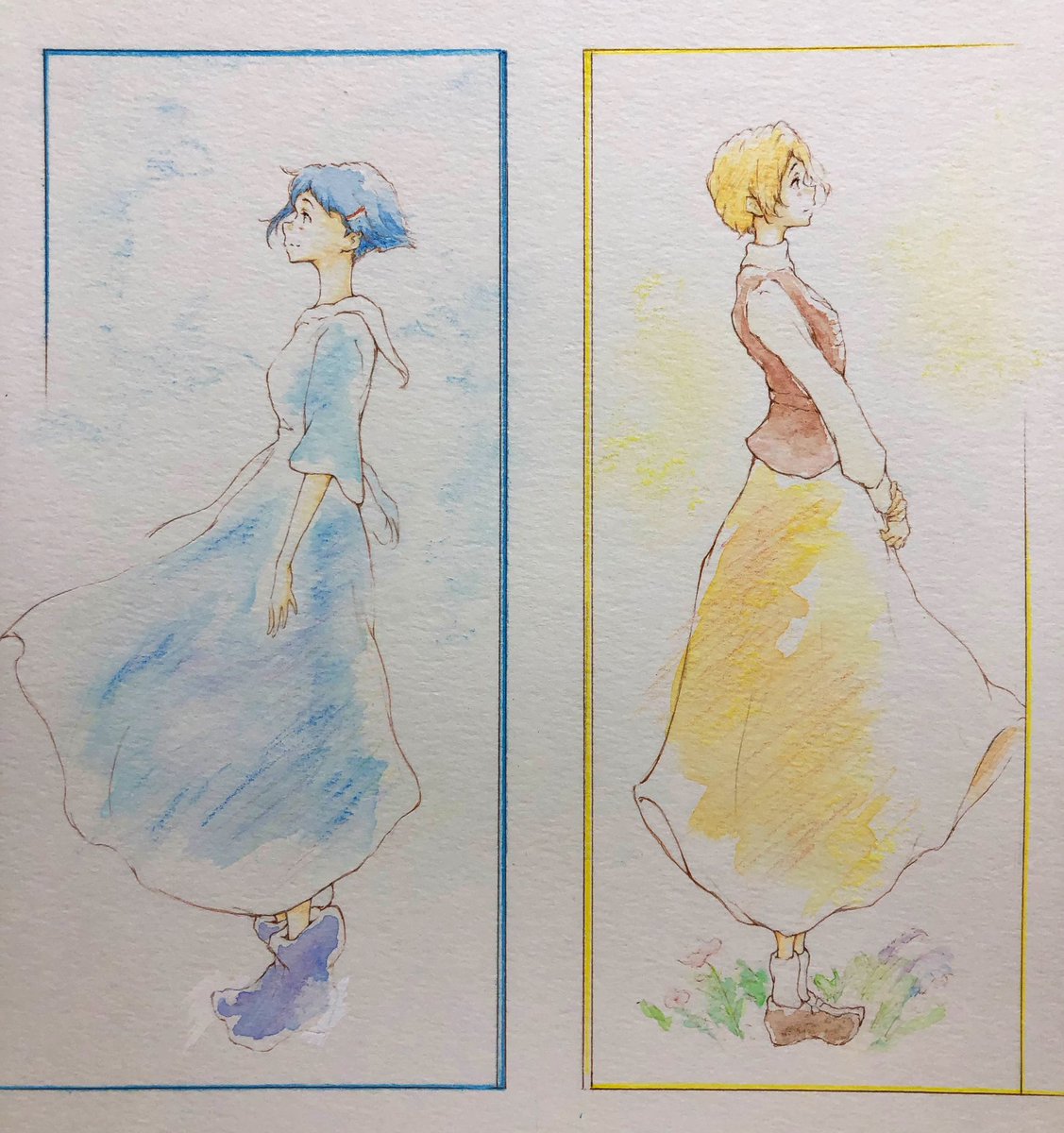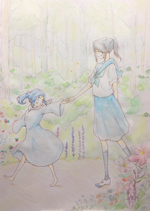 リズと青い鳥(3years later) 水彩やパステルの風合いがとても合う2人、描けて嬉しい!