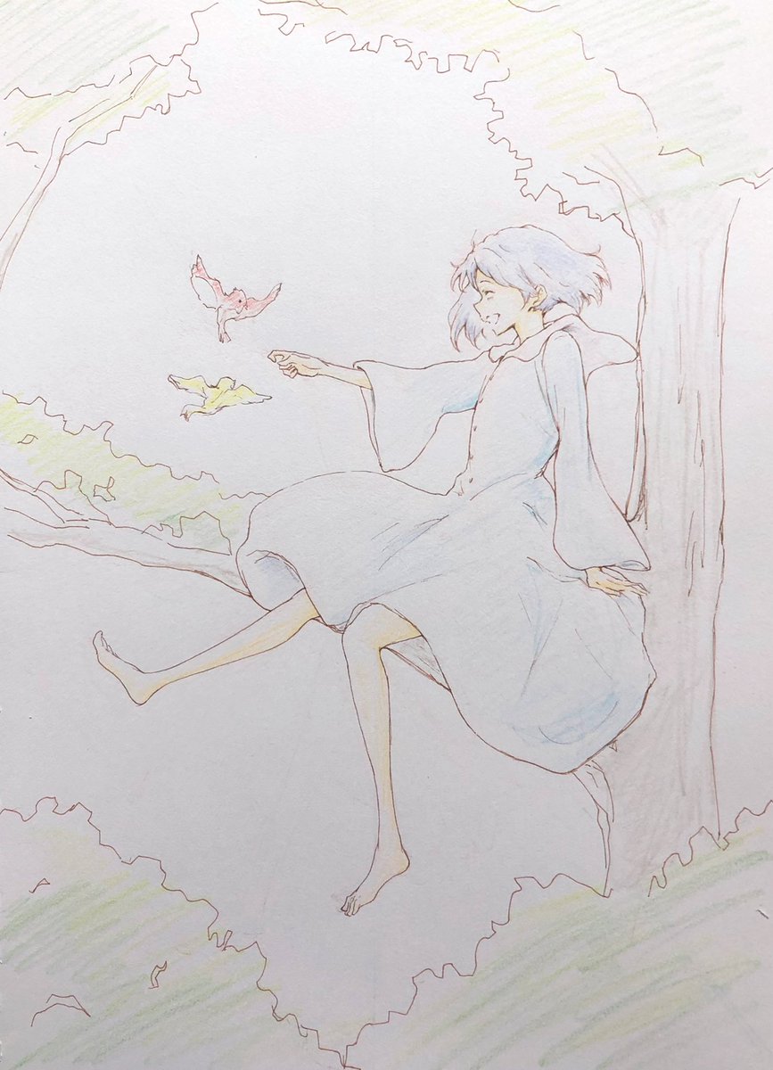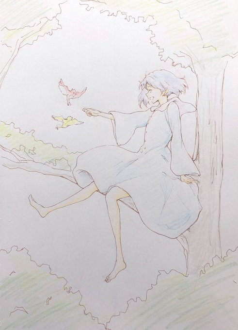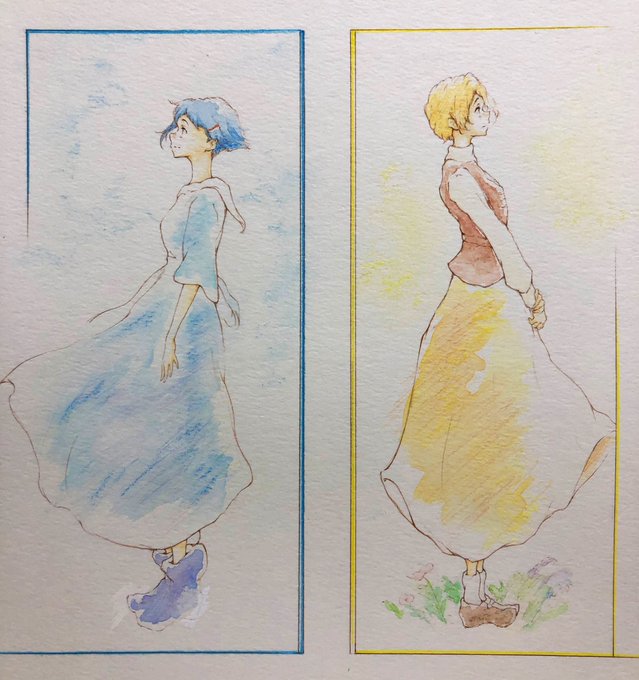 50 187 リズと青い鳥(3years later) 水彩やパステルの風合いがとても合う2人、描けて嬉しい! 23/07/08 22:43