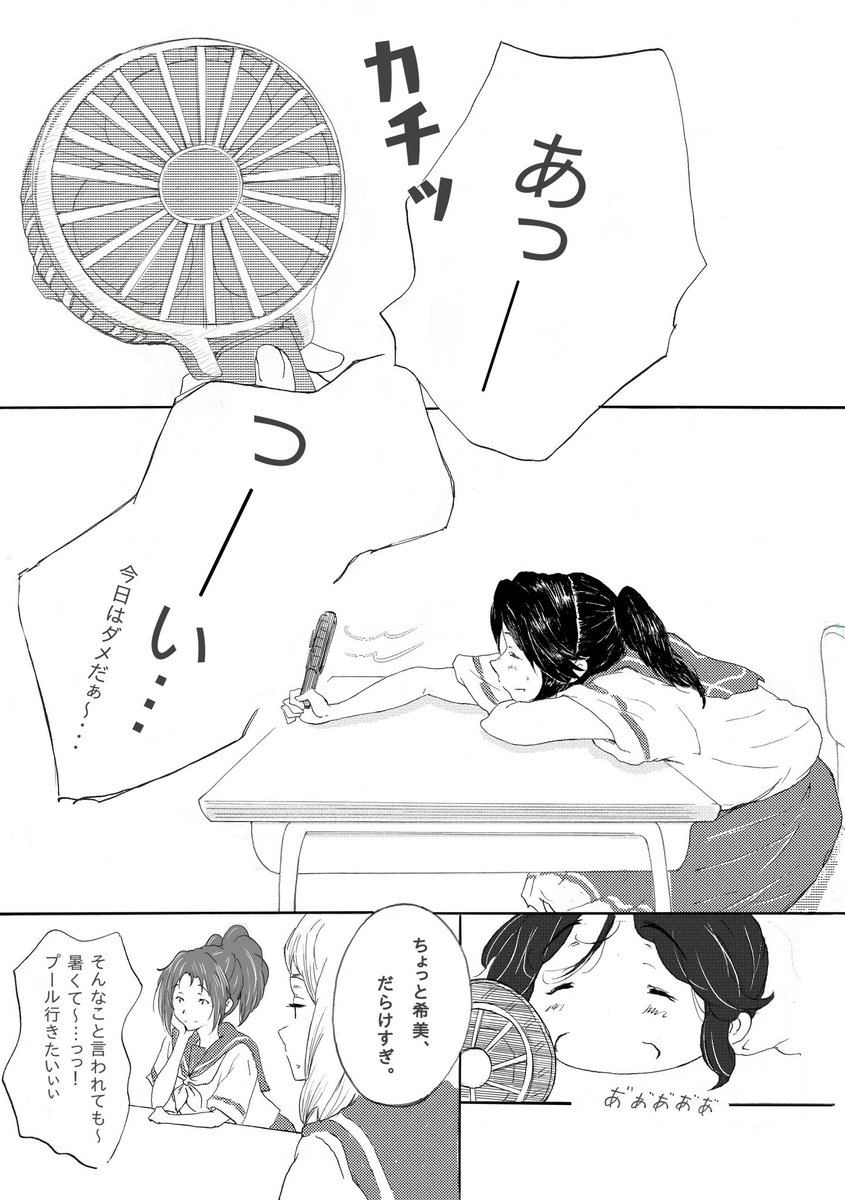 リズと青い鳥、のぞみぞ4Pコメディ漫画。 暑さで少し変な希美とちょっと頑張ってるみぞれ、のお話。実は最後のオチが1番描きたかったりして。