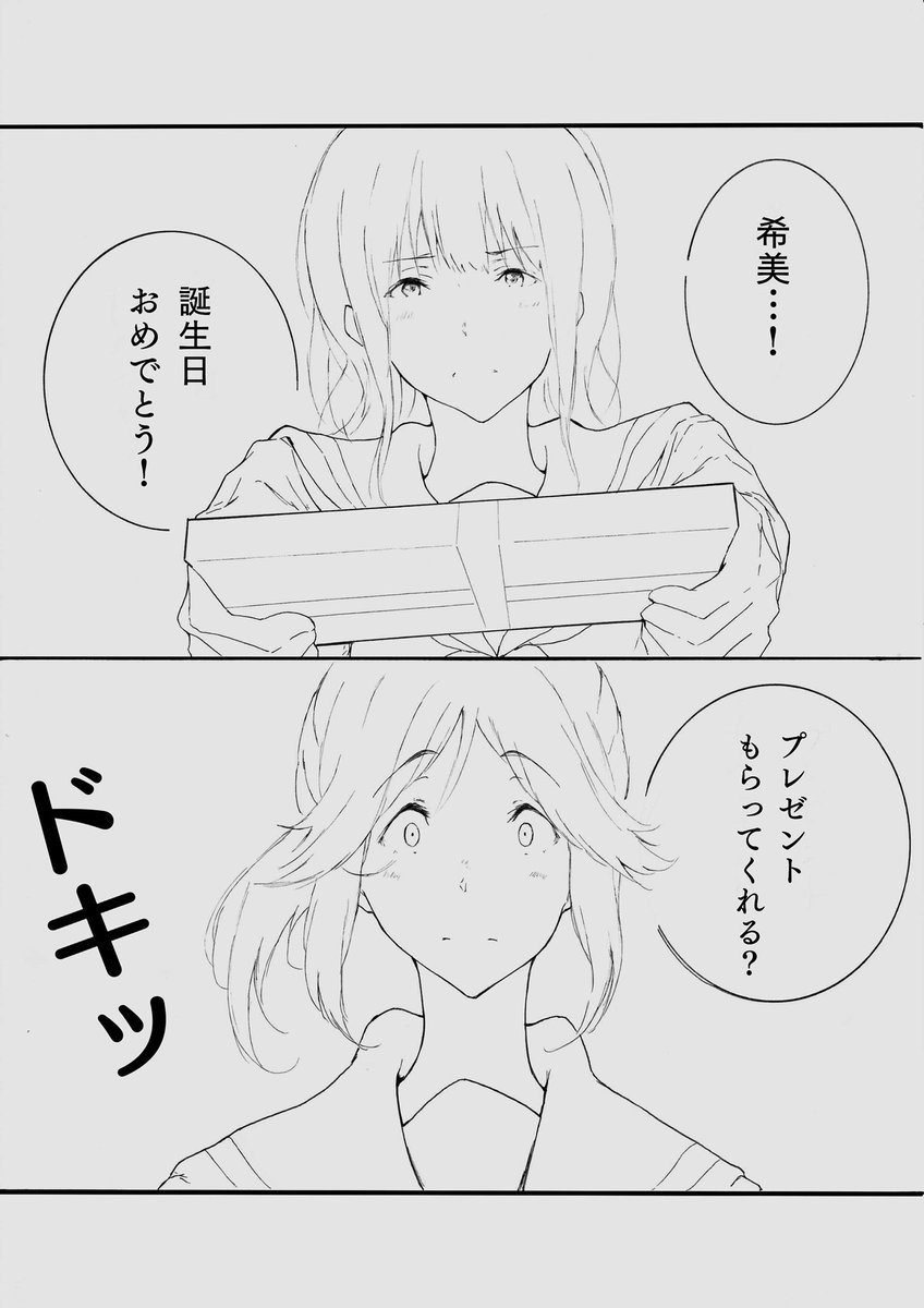 リズと青い鳥/12ページ+おまけ1P漫画。 (4ヶ月遅れ…💦) 希美の誕生日を通して、南中カルテット4人を描きました。ベタもトーンもない真っ白漫画ですが読んでいただけると嬉しいです!