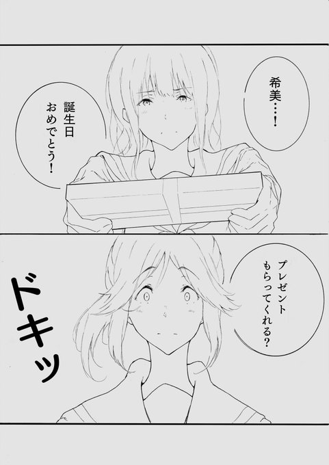 73 249 リズと青い鳥/12ページ+おまけ1P漫画。 (4ヶ月遅れ…💦) 希美の誕生日を通して、南中カルテット4人を描きました。ベタもトーンもない真っ白漫画ですが読んでいただけると嬉しいです! 22/04/01 21:44