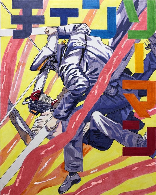いやぁ〜でけたでけた。これが今の私の全力です。#チェンソーマン #chainsawman #コピック #模写 #イラスト