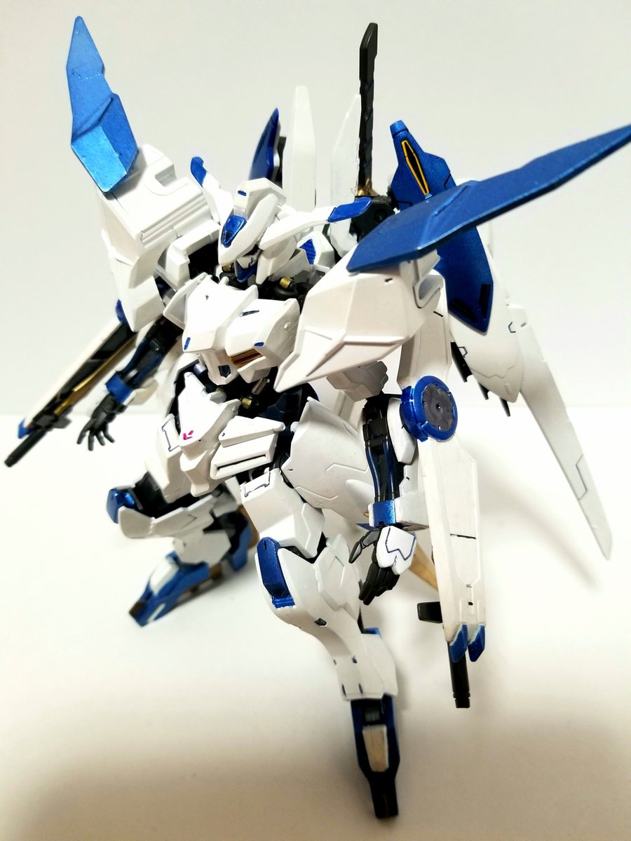 こいつが本日紹介の #ガンプラ ・ガンダムバエルベオウルフ。 阿頼耶識システム下での格闘戦と、高機動力で大剣をぶつける突撃戦法が意識された、ガンダムバエルの重武装カスタムだ。 ちなみにパーツを切り離したり、接着剤を使ったりしているから、多分ガンダムブレイカーで再現することはできないゾ