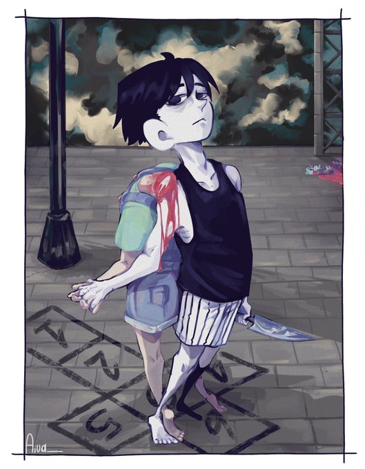 ⚠️CW // gore (the blood is pink tho)⚠️ . . . . . Dropped this drawing months ago bc i didn’t wanna draw the background 🤡🤡 #OMORI #OMORIFANART