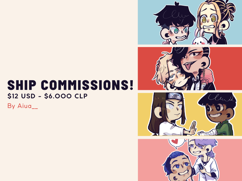 Hii!! i'm opening this tiny chibi commissions for your favorite ships, they start at $12 USD or $6.000 CLP for chilean people. If you're interested please send a mail or a DM retweets are very appreciated, thank you!! #Commission #commissionsopen #ArtistOnTwitter #commissions