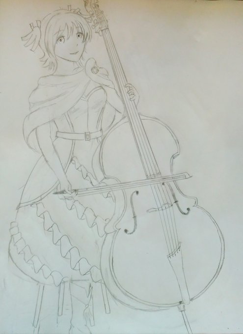 【描いてみた】 舞台少女がもし楽器をやってたら、な妄想シリーズ。 大場なな×コントラバス。 聖翔の「お母さん」にして作品のテーマの多くを背負い切った彼女もある意味コントラバス的存在。 #舞台少女と楽器概念 #塗ってもいいのよ
