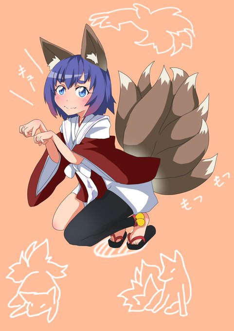 待たせたな! 九尾バージョンじゃよ きゅうびだからそらきゅーってなくじゃろ(すっとぼけ 背景は落書きみたいな背景 #いなりみく
