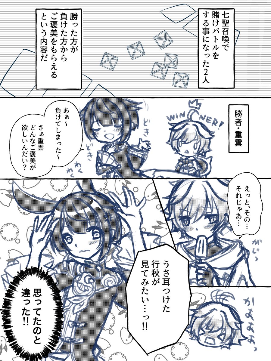 「賭け」「バニー」「ご褒美」+60min #重行ワンドロワンライ 📘「欲が無さすぎる!」