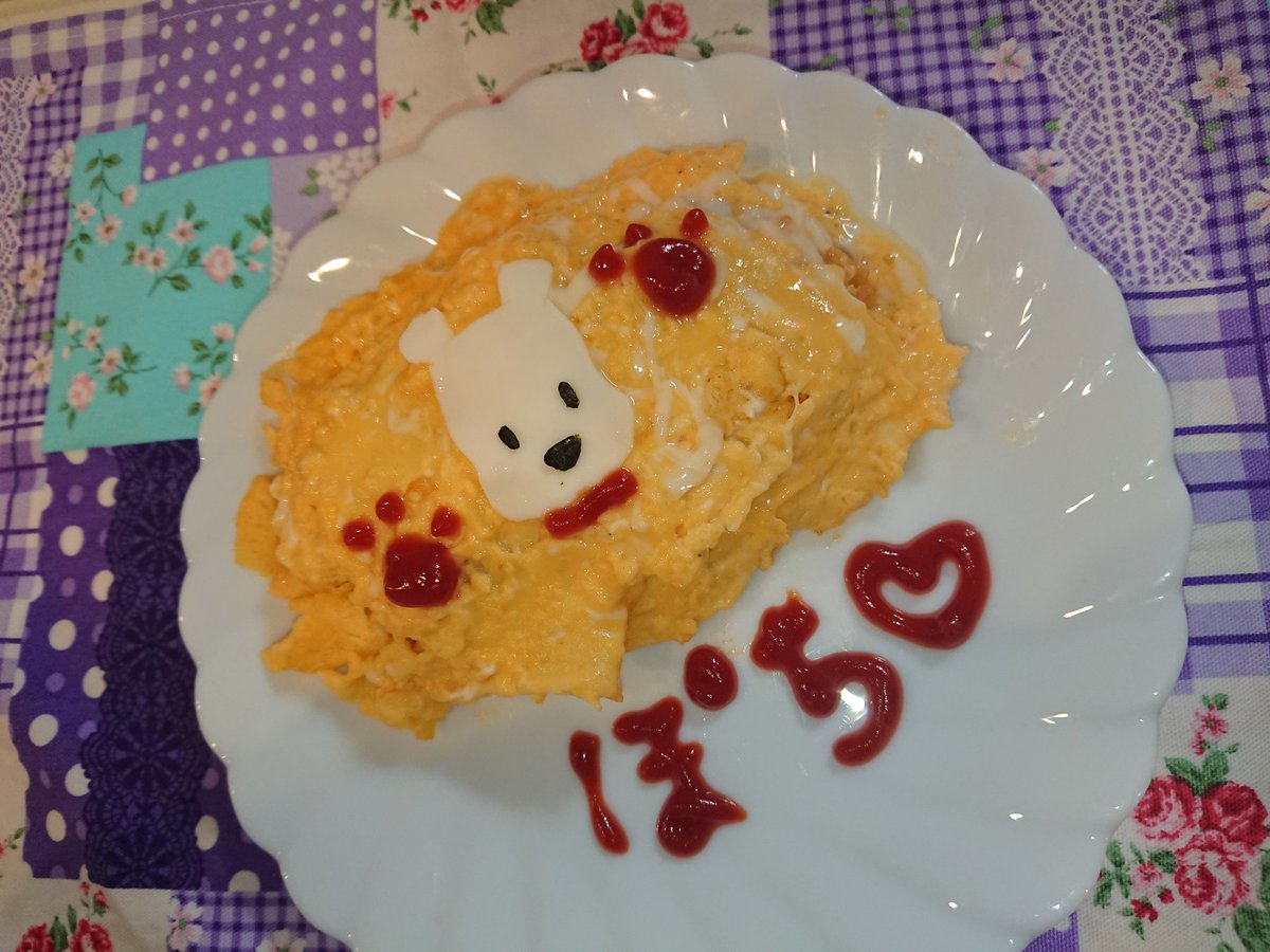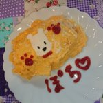 ぽちさ〜ん!! 締切延長したって聞いたから、 まだ締切ったと聞いてないから、 頑張って作ったよ♡ ぽちさん!自画像おむらいちゅ!! えっ!!ぽちちがい? あ!これ、タマのお友達だった💦 #ぽちぽちおむらいちゅ #ぽちいぬおすわり