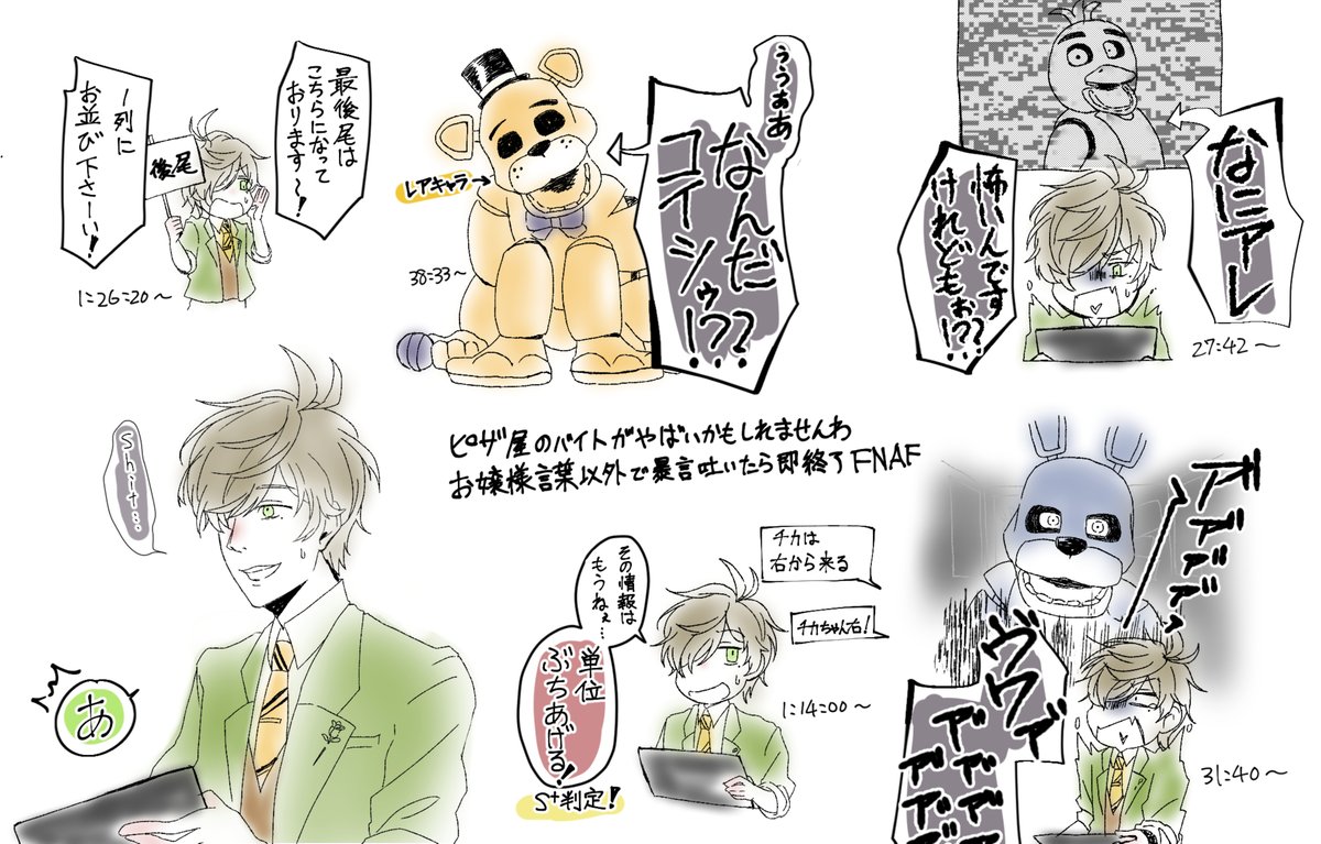 FNAF実況、個人的に面白かったところ描いてみた!! 教授の絶叫が聞けたので大満足です😊 #絵バンス