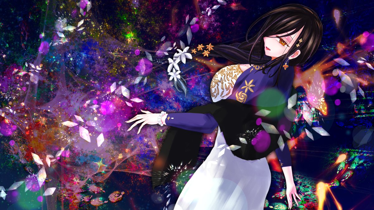 今回背景に使った過去のAbstract素材も #巴絵 に投げてみる レイヤーモードを加算したり覆い焼きしたりするといい感じにスパイスになるのでAbstractはいいぞ