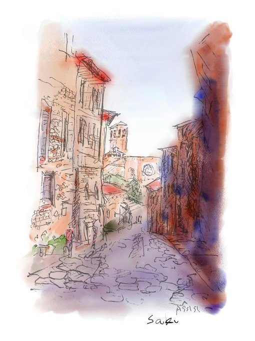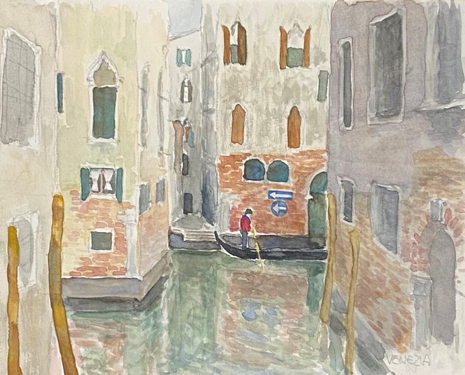 『ヴェネツィアにて』 初めて #アルコールインクアート に挑戦してみました と言っても、アルコールインクアートはふつう偶然的なインクの流れを楽しむ抽象画ですけど、私の場合その上から風景を描いて具象画にしてしまいました😅 私、抽象画を描けないのです笑