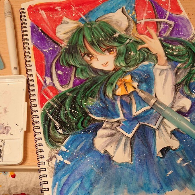 24 60 はたさんに使い方教えてもらって、今度は、夢月ちゃん描いてみました🎨✨ 魅魔様の時より、ちょっと柔らかく塗れたような気がする(*´∀`)♪ 19/03/31 23:33