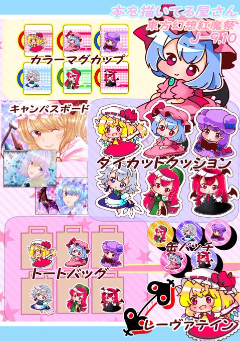 明日の幺樂団カァニバルのお品書きです! 新作もりもり✨他にもダイカットクッションや色紙も持っていきま~す! よろしくどうぞ~(●^o^●)
