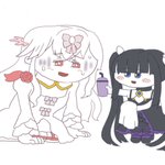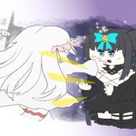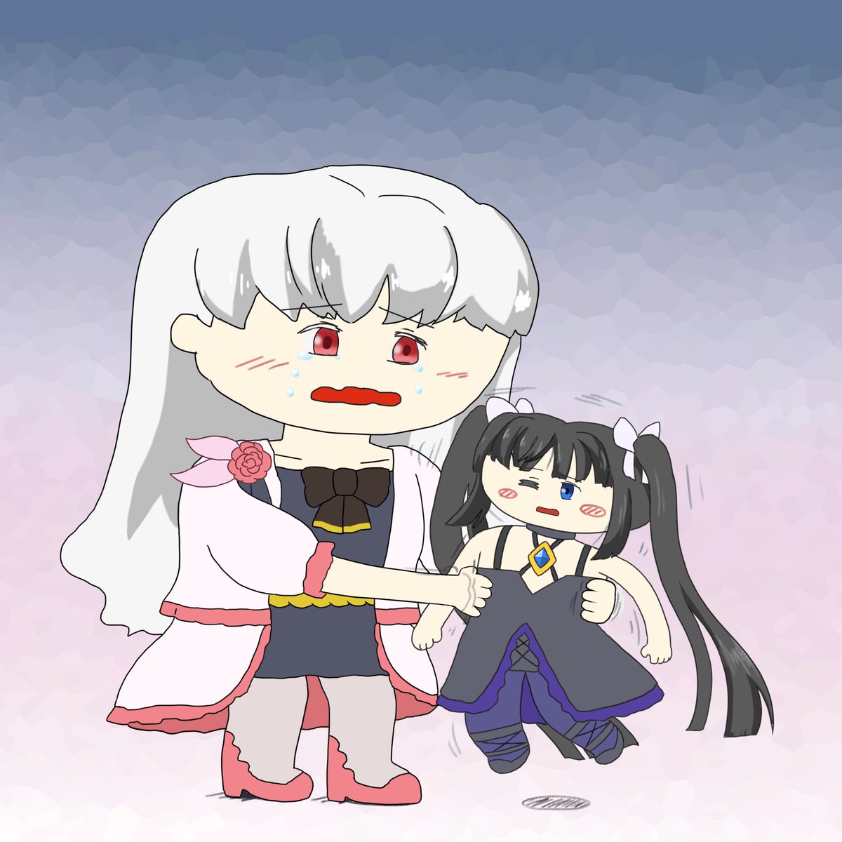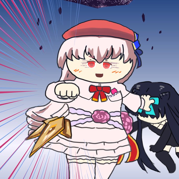急なお誘いに応じてくれてありがとなのー 🌕「『タイリツ』ってもっとヤバい奴かと思ったー」 ⭐️「ルナより礼儀正しくて大人しいね。意外っ」 🌕「何をっ😡」 「その子の友達になって下さ〜い」 (むかしのわたしってどんなのだろう…?) #arcaea_art