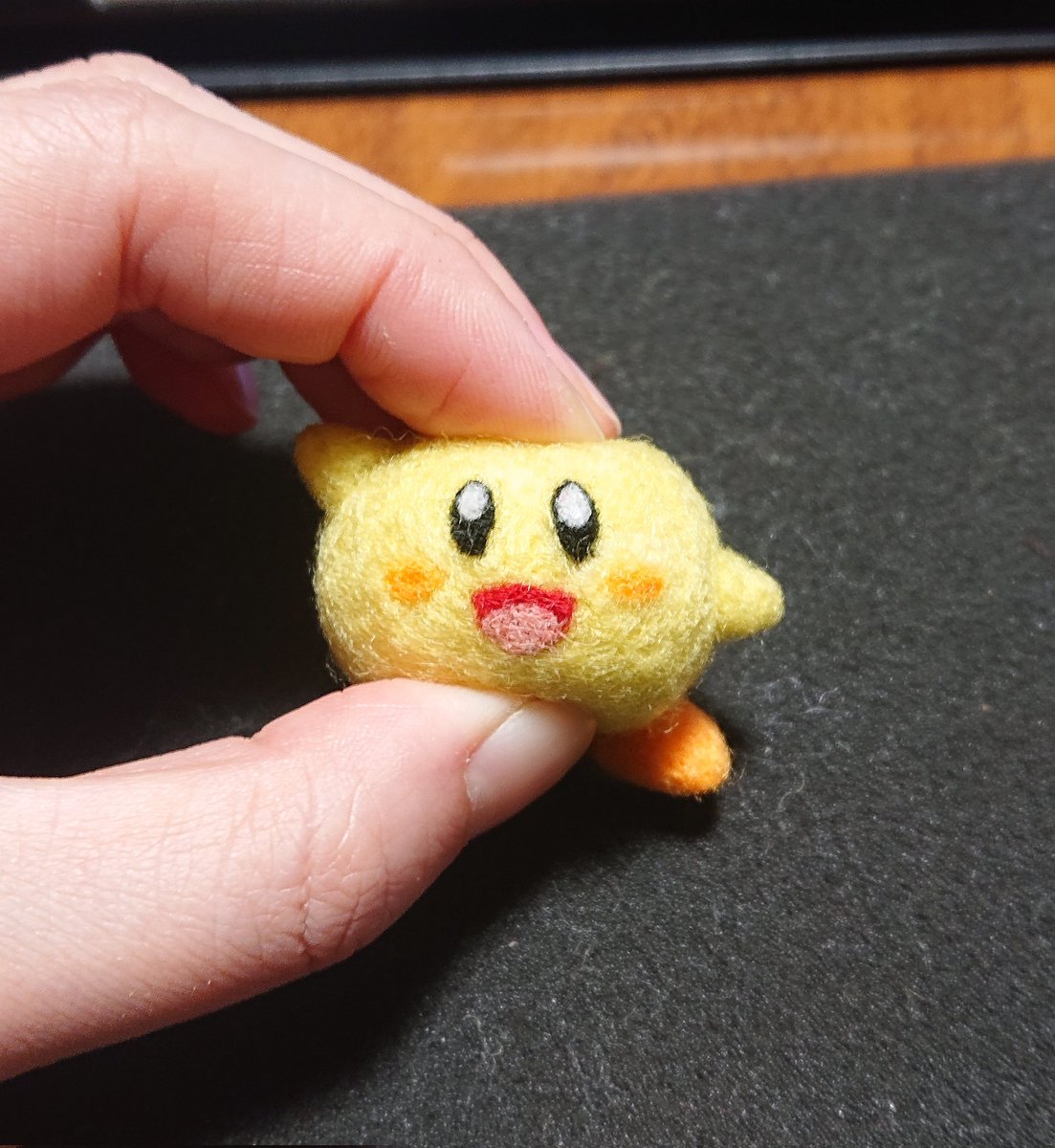1 8 ちょっと前に作ったちんまりカービィ 例のごとくぷにぷに でもやっぱり小さい分硬くなっちゃいますね😅 #羊毛フェルト 23/05/11 21:52