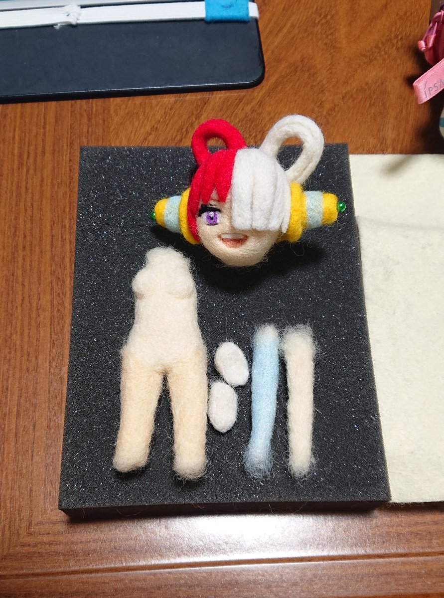 やっぱり顔ちょっと変えちゃった! パーツ足りてないけど、一旦体作ります(*´꒳`*) #羊毛フェルト #ONEPIECE
