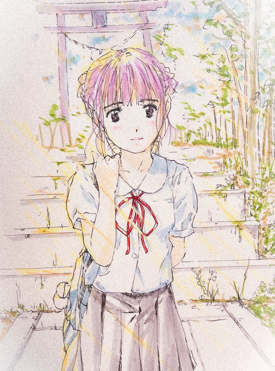 竹林通って登校女の子 描いたょ☺️✨ #落書きギルド #絵描きさんと繋がりたい #ART_RT #人物イラR #創作イラS #落書イラR #絵柄が好みって人にフォローされたい #初夏の創作クラスタフォロー祭り #学生時代 #登校 #絵