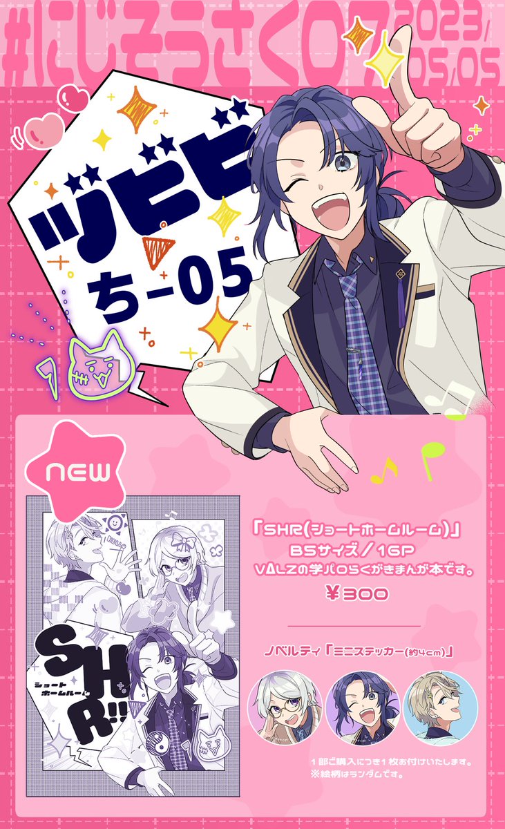 【ち-05】 ヅビビ <新刊サンプル>「SHR!!(ショートホームルーム)」/B5/16P/¥300 🔺の学パロです。 平和で短いまんががいくつか入っています! #にじそうさく07