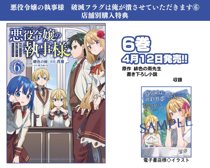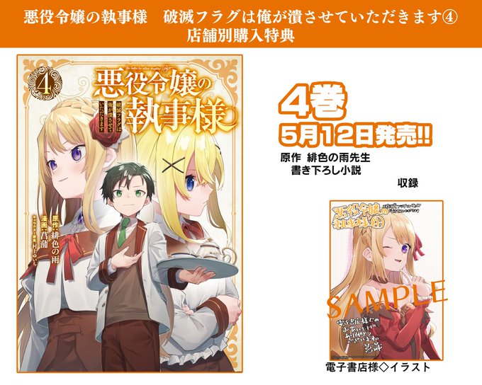 【お知らせ】 悪役令嬢の執事様-破滅フラグは俺が潰させていただきます- コミカライズの4巻が2022年5月12日に発売します🥳 お陰様で原作小説2巻の内容に突入しました! Amazonさんの方ですでに予約が始まってます amazon.co.jp/dp/4757579225/…