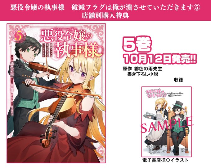【お知らせ】 悪役令嬢の執事様-破滅フラグは俺が潰させていただきます- コミカライズの5巻が2022年10月12日に発売します🎉 Amazonさんの方ですでに予約が始まってます! amazon.co.jp/dp/4757582021/…
