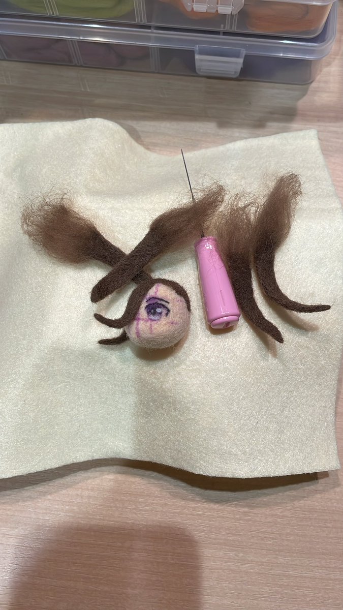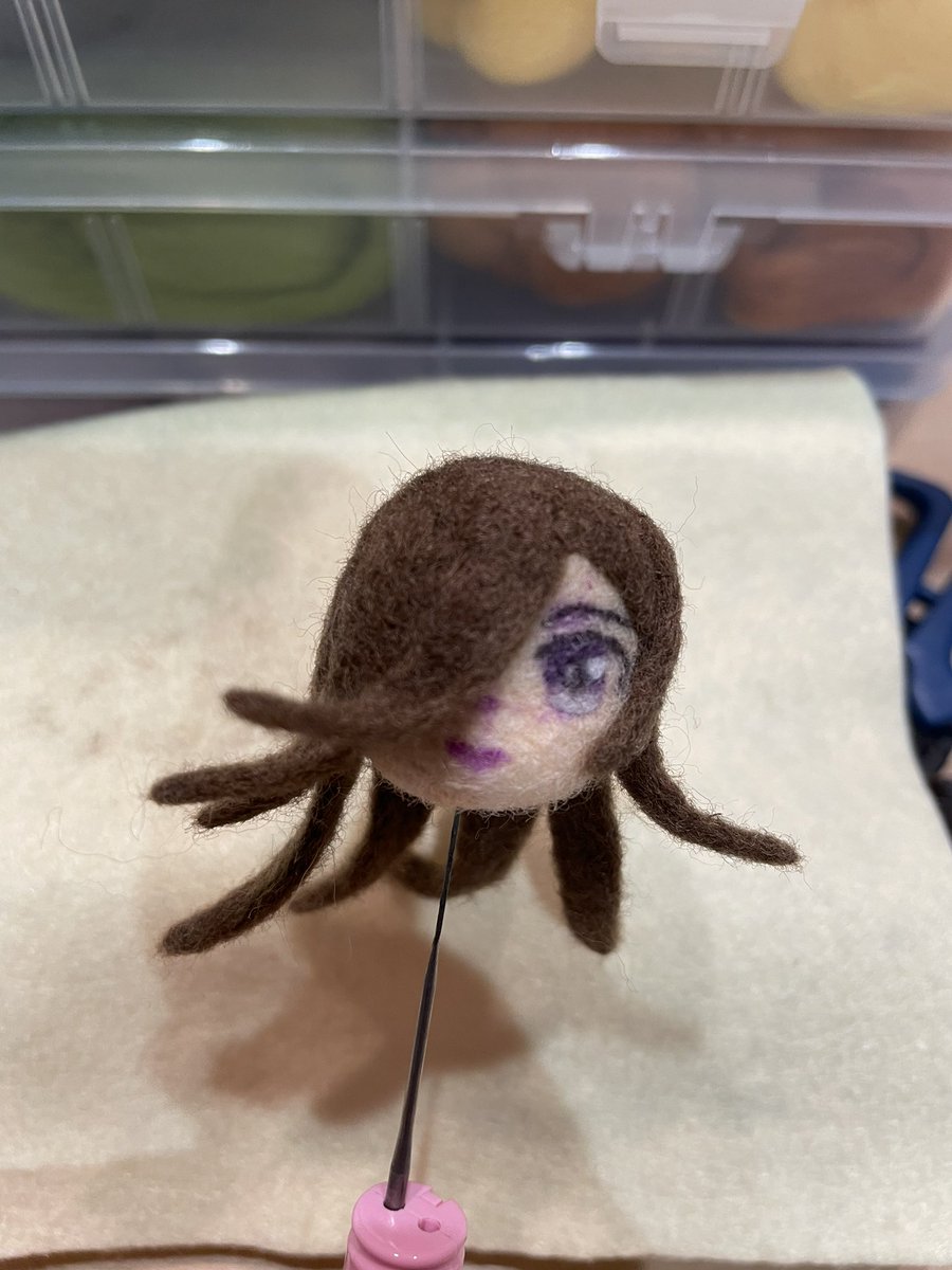 前髪を植えました〜。 バランスが悪い? #羊毛フェルト #羊毛フィギュア