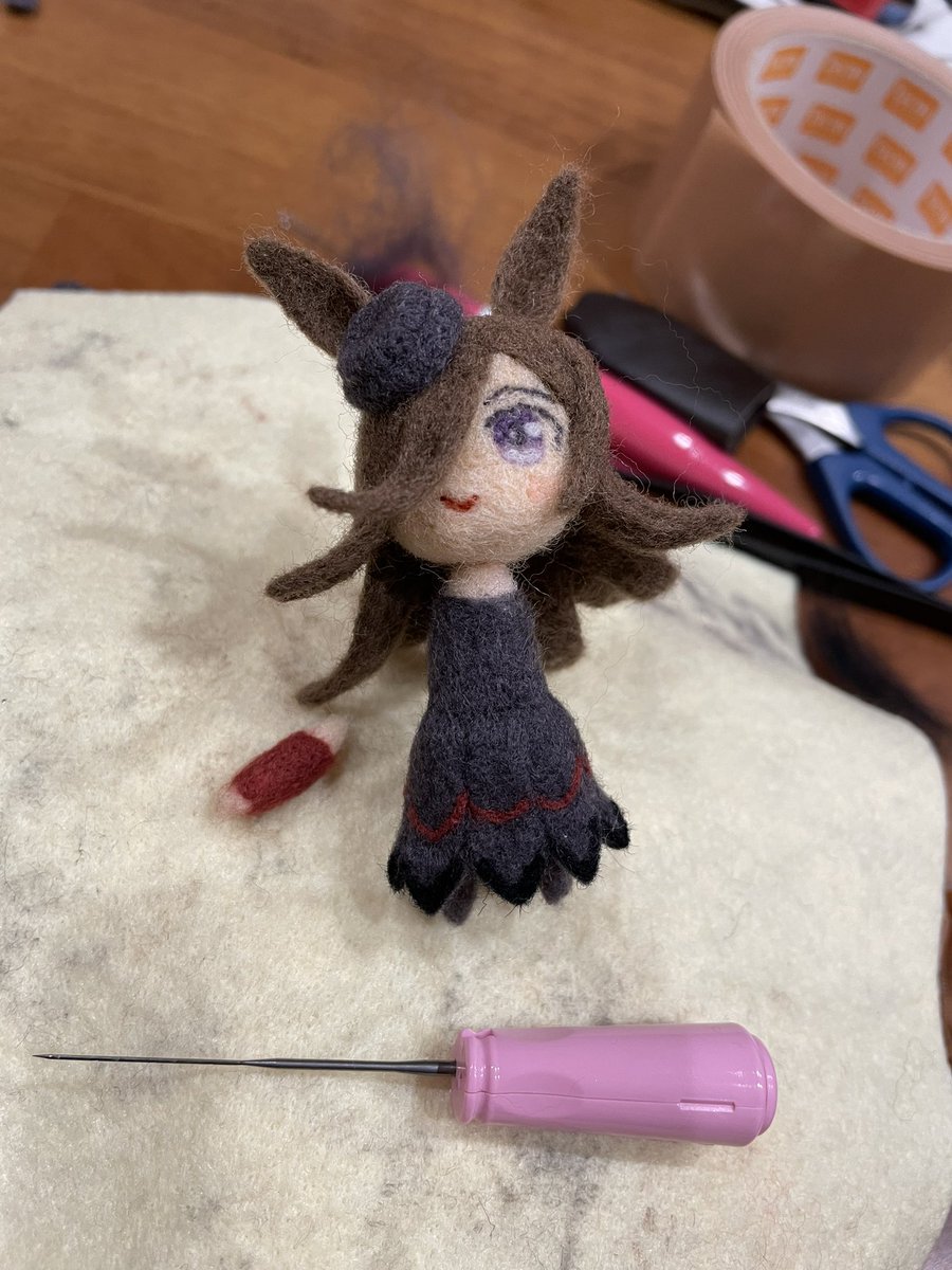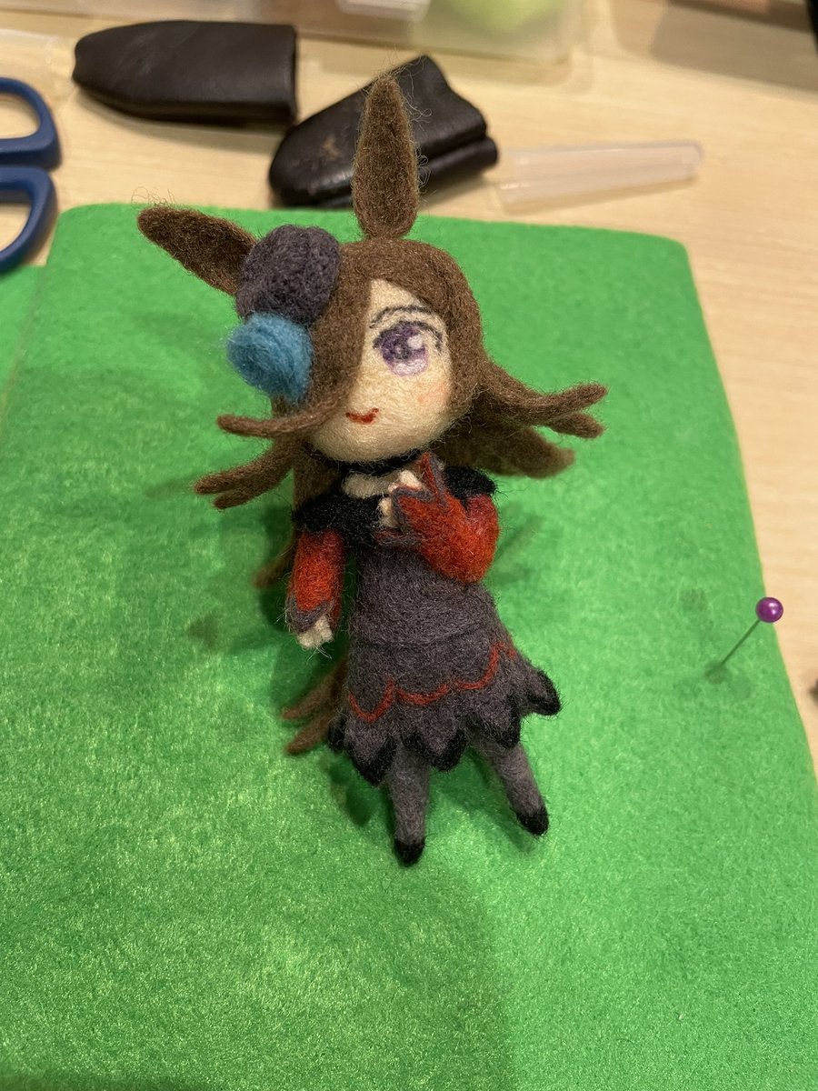 ほっぺにピンク刺したら、可愛らしくなった気がする! #羊毛フェルト #羊毛フィギュア #ウマ娘 #マンハッタンカフェ