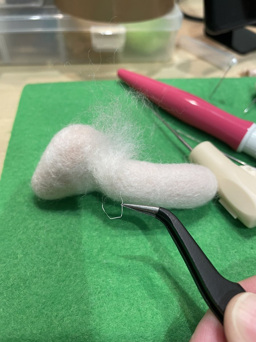 0 10 ベースがピンクだから、白を刺しても刺しても透ける! 作りたいものに合わせて白いニードルわたわたにするべきだったね! #羊毛フェルト #羊毛フィギュア 22/04/26 07:54