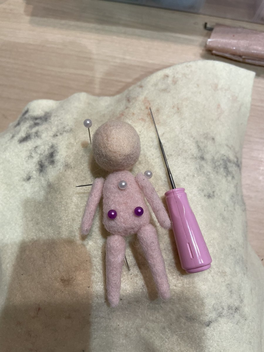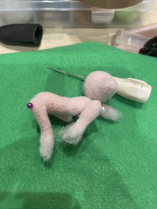 0 9 肌色のせつつ、目を入れてみた! 左の肘が痛ぇぜ! #羊毛フェルト #羊毛フィギュア 22/06/18 10:44