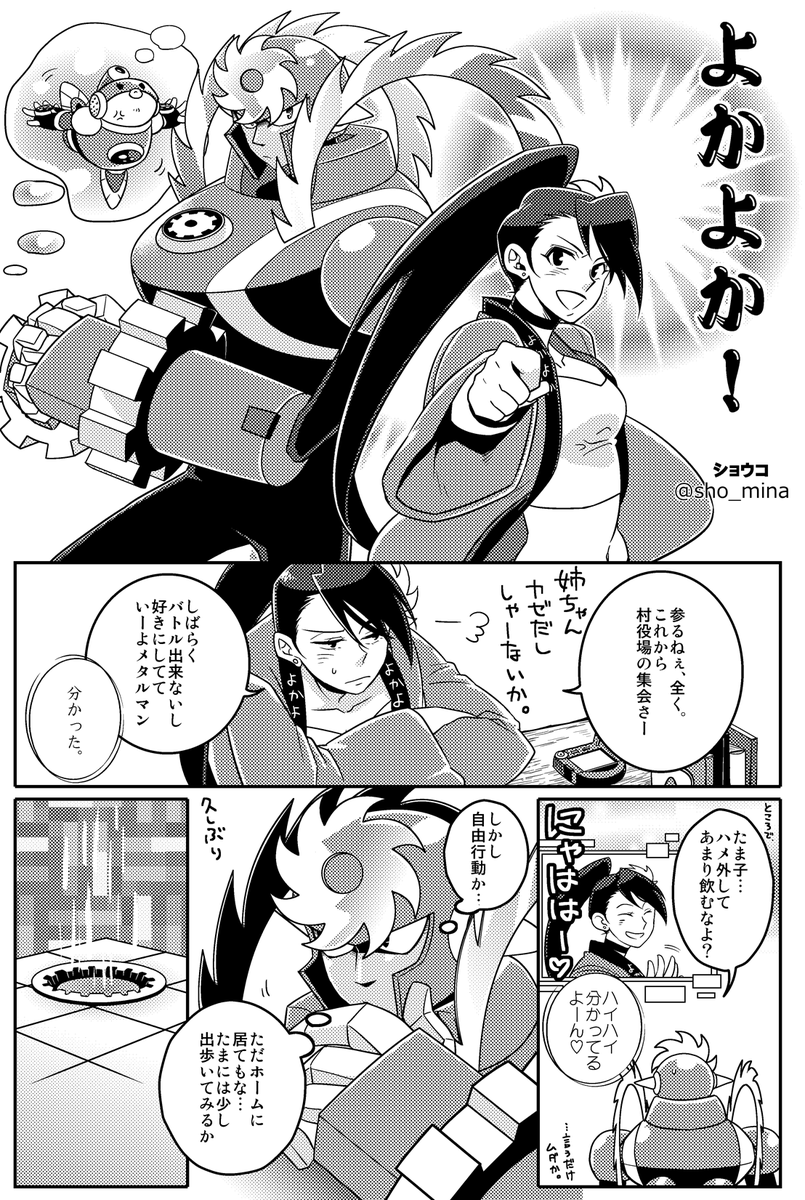 15 25 アニメのメタルマン見て心がホッコホコになったので昔エグゼアンソロで描かせていただいた鋼組+泡マンガ4P出し。なつかしい 23/02/05 17:46